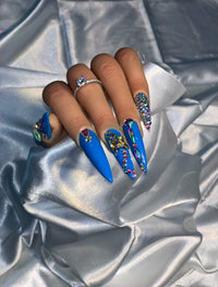 Step into the spotlight with our Royal Blue Crystal Luxe Press-On Nails, designed for unapologetic glamour. These stiletto beauties feature: