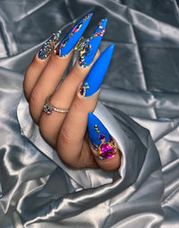 Step into the spotlight with our Royal Blue Crystal Luxe Press-On Nails, designed for unapologetic glamour. These stiletto beauties feature: